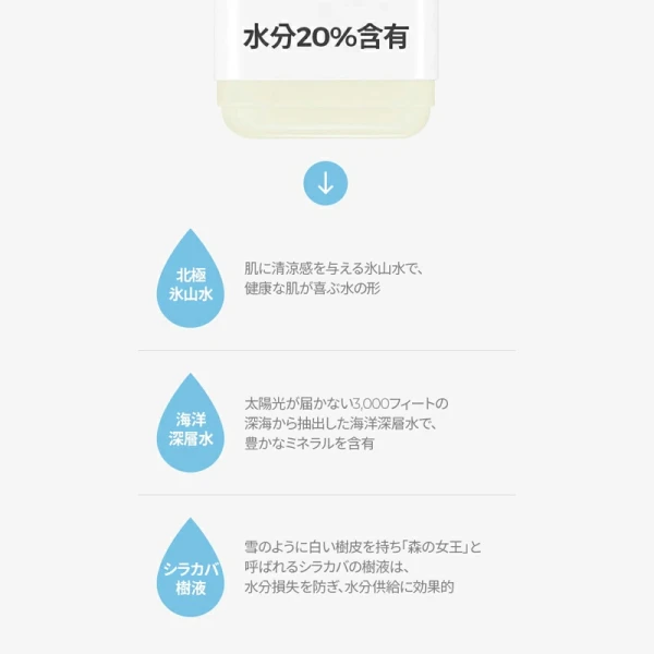 清涼な北極氷山水/シラカバ樹液/海洋深層水を含み、塗った時は爽快に、仕上げはサラサラに整えます