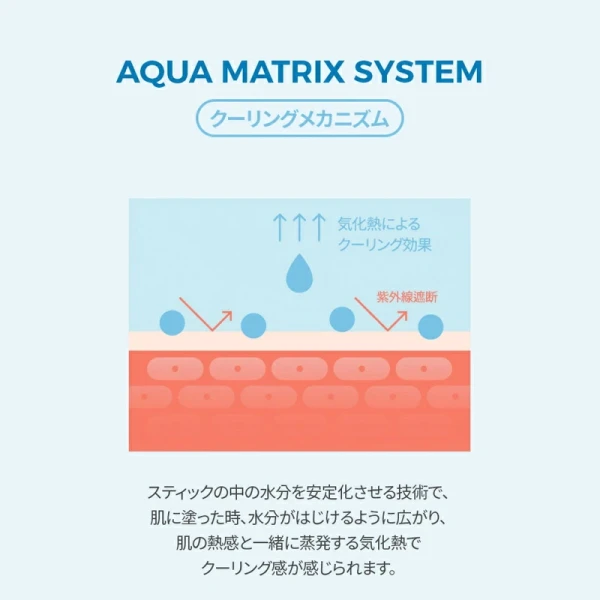 肌の熱を逃がすクーリングメカニズムが、紫外線によって熱焼けした肌を落ち着かせます
