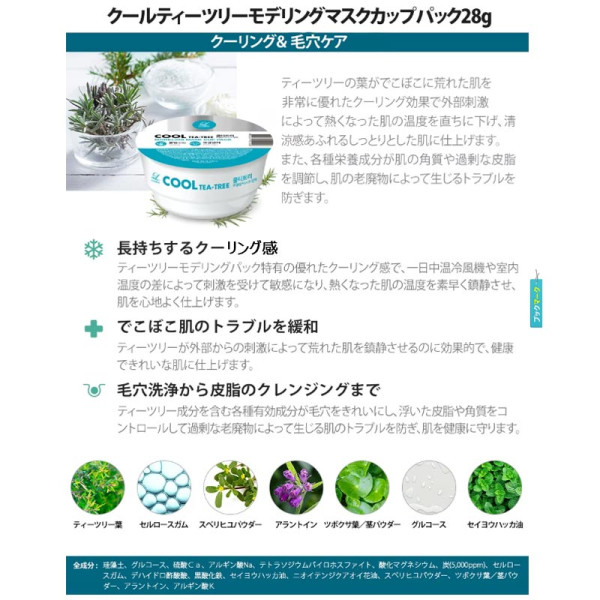 珪藻土、グルコース、硫酸Ca、アルギン酸Na、ピロリン酸4Na、酸化Mg、加水分解コラーゲンなど