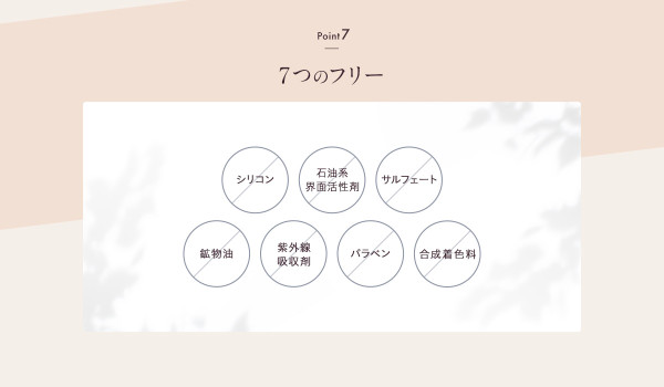 ◇ご使用中に赤み、はれ、かゆみ、刺激、色抜け(白斑等)や黒ずみ等の異常があらわれた場合や、ご使用したお肌に直射日光があたって、上記のような異常があらわれた場合は、ご使用を中止してください。そのままご使用を続けますと、症状を悪化させることがありますので、皮膚科専門医等にご相談されることをおすすめします。
