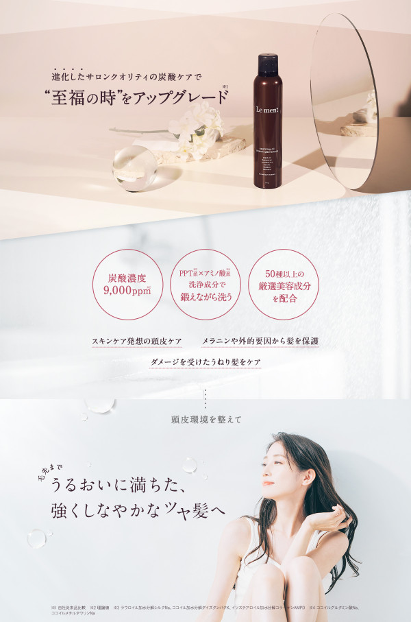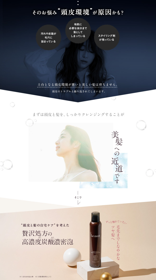頭皮から美髪をつくる高濃度※1炭酸※2オイルシャンプー