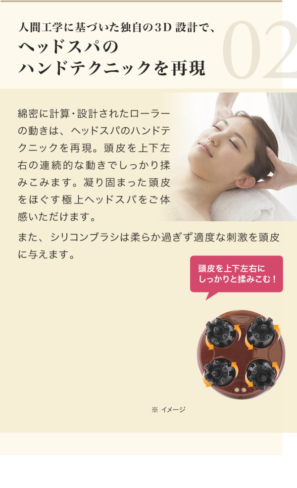 ・人間工学に基づいた独自の3D設計で、ヘッドスパのハンドテクニックを再現