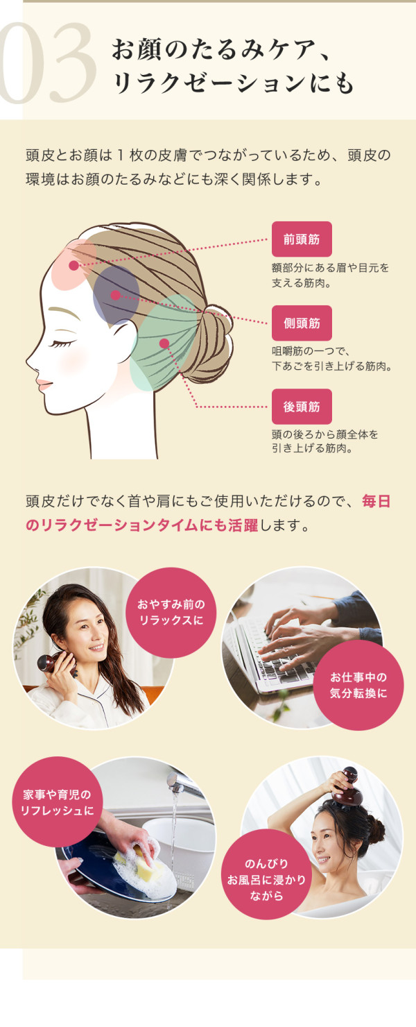 ・お顔のたるみケア、リラクゼーションにも
