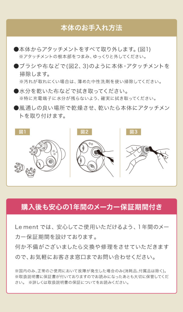 ・妊娠中、生理中の方(ホルモンバランスが不安定で、肌トラブルの原因になります。) ・乳幼児(手の届かない場所に保管し、使用させないでください。万が一、部品を誤飲してしまった場合は、ただちに医師にご相談ください。)