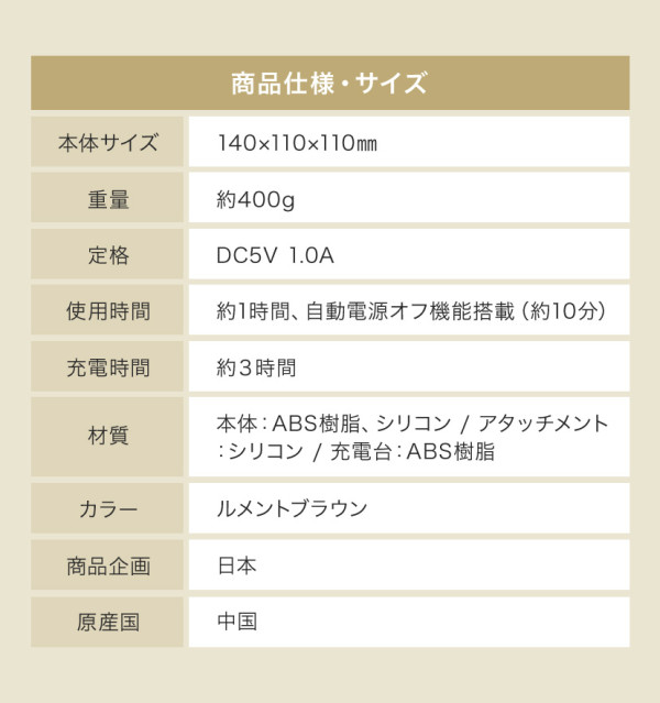 <商品使用仕様・サイズ>