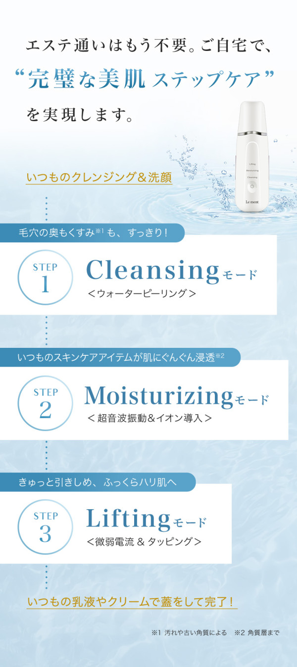 エステ通いはもう不要。ご自宅で、“完璧な美肌ステップケア”を実現します。