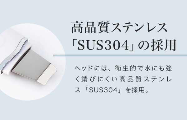 ヘッドには、衛生的で水にも強く錆びにくい高品質ステンレス「SUS304」を採用。