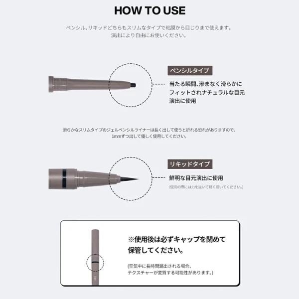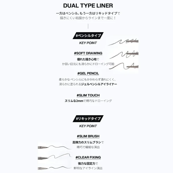 ペンシル+リキッドタイプで描きにくい粘膜からラインまで一度に!