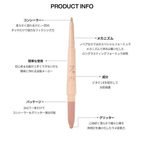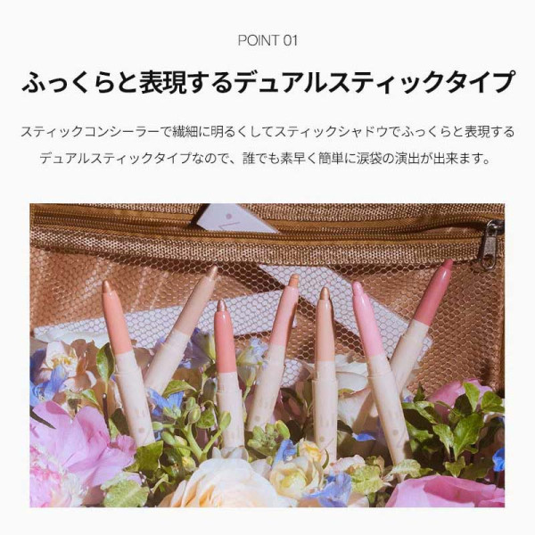スティックコンシーラーで繊細に明るくしてスティックシャドウでふっくらと表現するデュアルスティックタイプなので、誰でも素早く簡単に涙袋の演出ができます