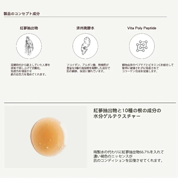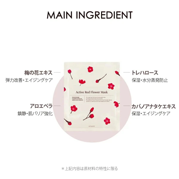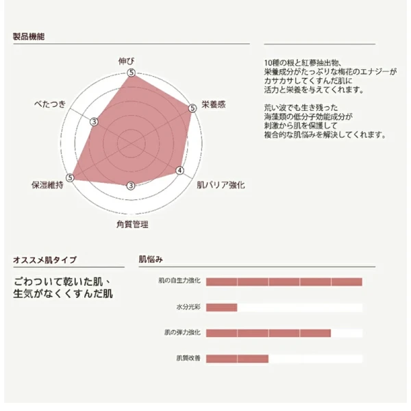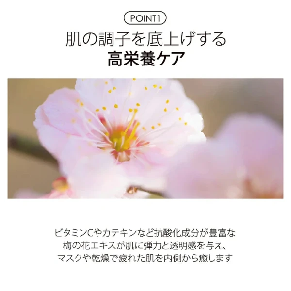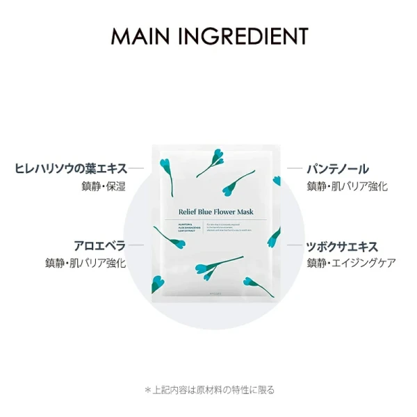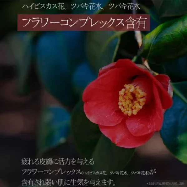 疲れた皮膚に活力を与えるフラワーコンプレックス(ハイビスカス花、ツバキ花)が含有され、弱い肌に生気を与えます