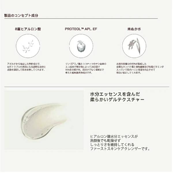 ヒアルロン酸水分エッセンスで洗顔後も乾燥せずしっとりさを維持してくれるファーストスキンケアクレンザーです