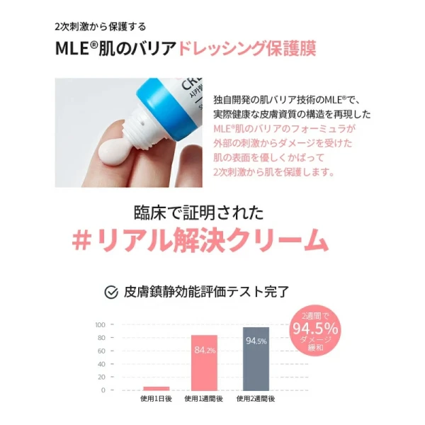 ツボクサエキス、水、グリセリン、DPG、ジステアリン酸ポリグリセリル-3メチルグルコース、セテアリルアルコール、BG、1,2-ヘキサンジオール、トリ(カプリル酸/カプリン酸)グリセリル、エチルヘキサン酸セチル、シア脂、ステアリン酸、ウンシュウミカン果皮エキス、ステアリン酸グリコール(SE)、EDTA-2Na、グリチルリチン酸2K、レシチン、マデカッソシド、マデカシン酸、ビオサッカリドガム-1、ベタイン、ベンジルグリコール、セイヨウサンザシエキス、セラミドNP、アセチルヒアルロン酸Na、ヒアルロン酸Na、ヒアルロン酸クロスポリマーNa、スクワラン、アシアチコシド、アシアチン酸、アラントイン、ドクダミエキス、エチルヘキシルグリセリン、オリーブ果実油、オタネニンジン根エキス、キサンタンガム、ゼラチン、ジェランガム、カルボマー、酢酸トコフェロール、トロメタミン、ティーツリー葉油、ティーツリーエキス、パンテノール、パルミチン酸、ペンチレングリコール、プロパンジオール、フィトステロールズ、水添レシチン、ヒアルロン酸ヒドロキシプロピルトリモニウム、加水分解ムコ多糖、加水分解エンドウタンパク、加水分解ヒアルロン酸、ヒアルロン酸、ホホバ種子油
