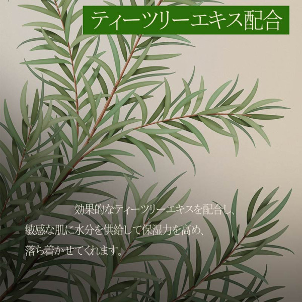 効果的はティーツリーエキスは、敏感な肌に水分を供給して保湿力を高め、落ち着かせてくれます。