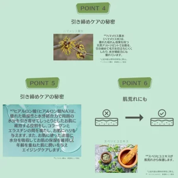 ・天然アストリゼントのハマメリス水でお肌を引き締め毛穴を目立ちにくくします
