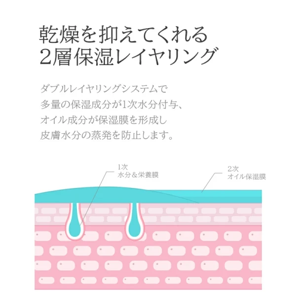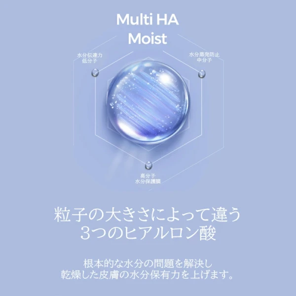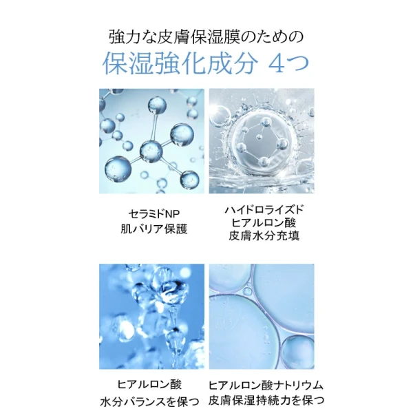 高、中、低分子の強力な水分レイアリングでしっとり肌を長く維持し整えます。