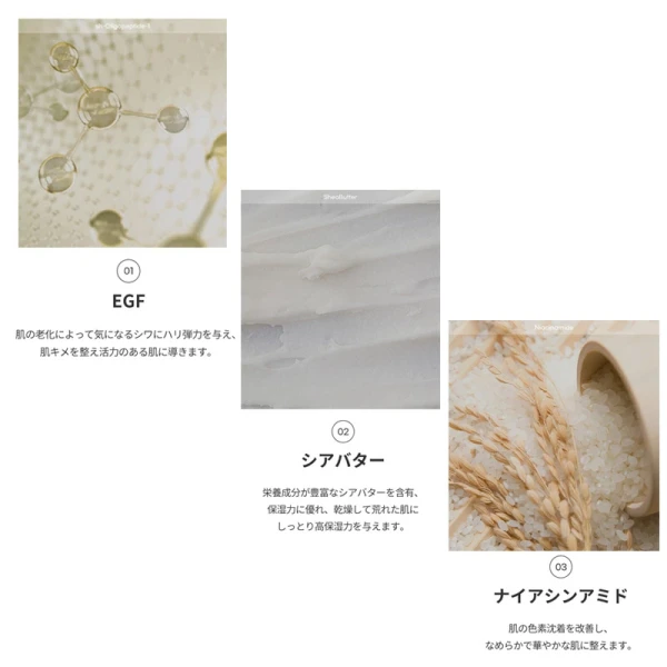 肌を強化してくれるSHオリゴペプチド-1が含まれており、老化により生じるシワにハリを与えます