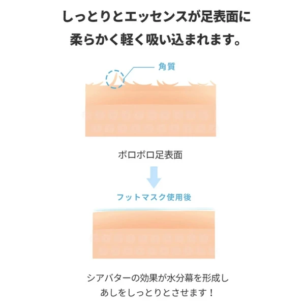・シアバターの効果が水分膜を形成し足を柔らかく包んでしっとり角質ケア