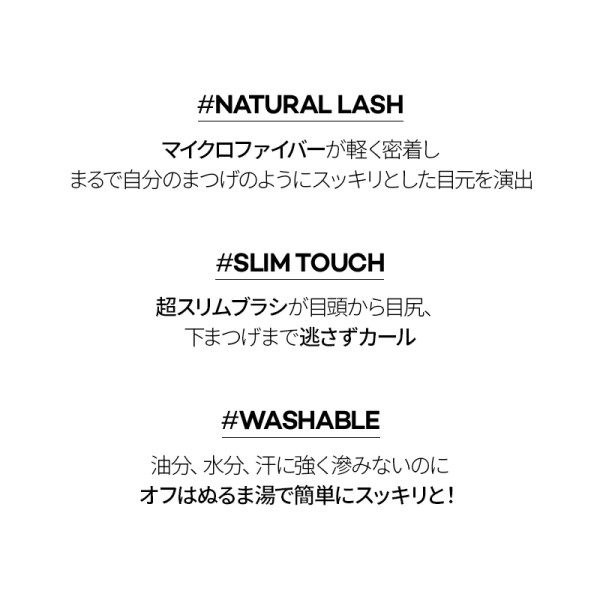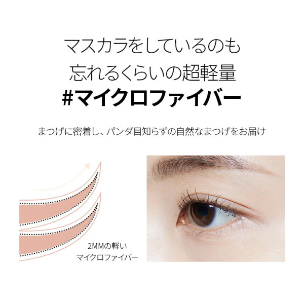 マイクロファイバーが軽く密着しまるで自分のまつげのようにスッキリとした目元を演出